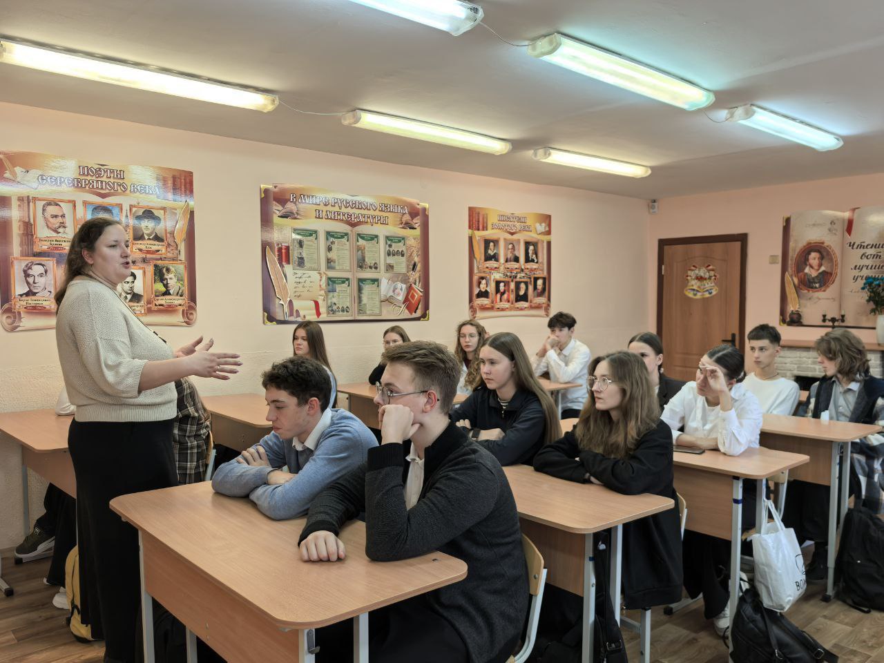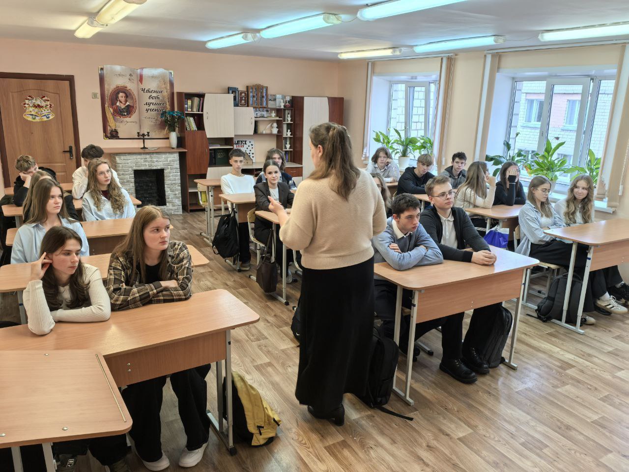 09.10.25 учащиеся 10Б класса ГУО "Средняя школа N73 г.Гомеля" стали участниками беседы в рамках выставочно-лекционного комплекса "Человеческий потенциал Отечества". Методист отдела религиозного образования Гомельской епархии Т.А.Давыденко провела беседу "Смысл жизни". Ребята рассуждали, отвечали на вопросы, делились идеями.