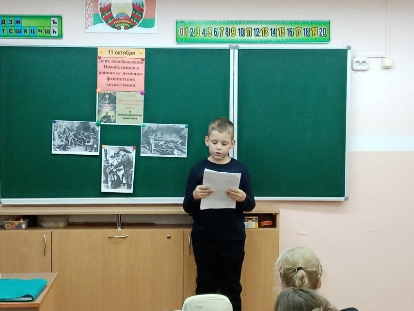 10.10.25 в преддверии дня освобождения Новобелицкого района от немецко-фашистских захватчиков в ГУО "Средняя школа 73 г.Гомеля" прошёл Единый урок Памяти.