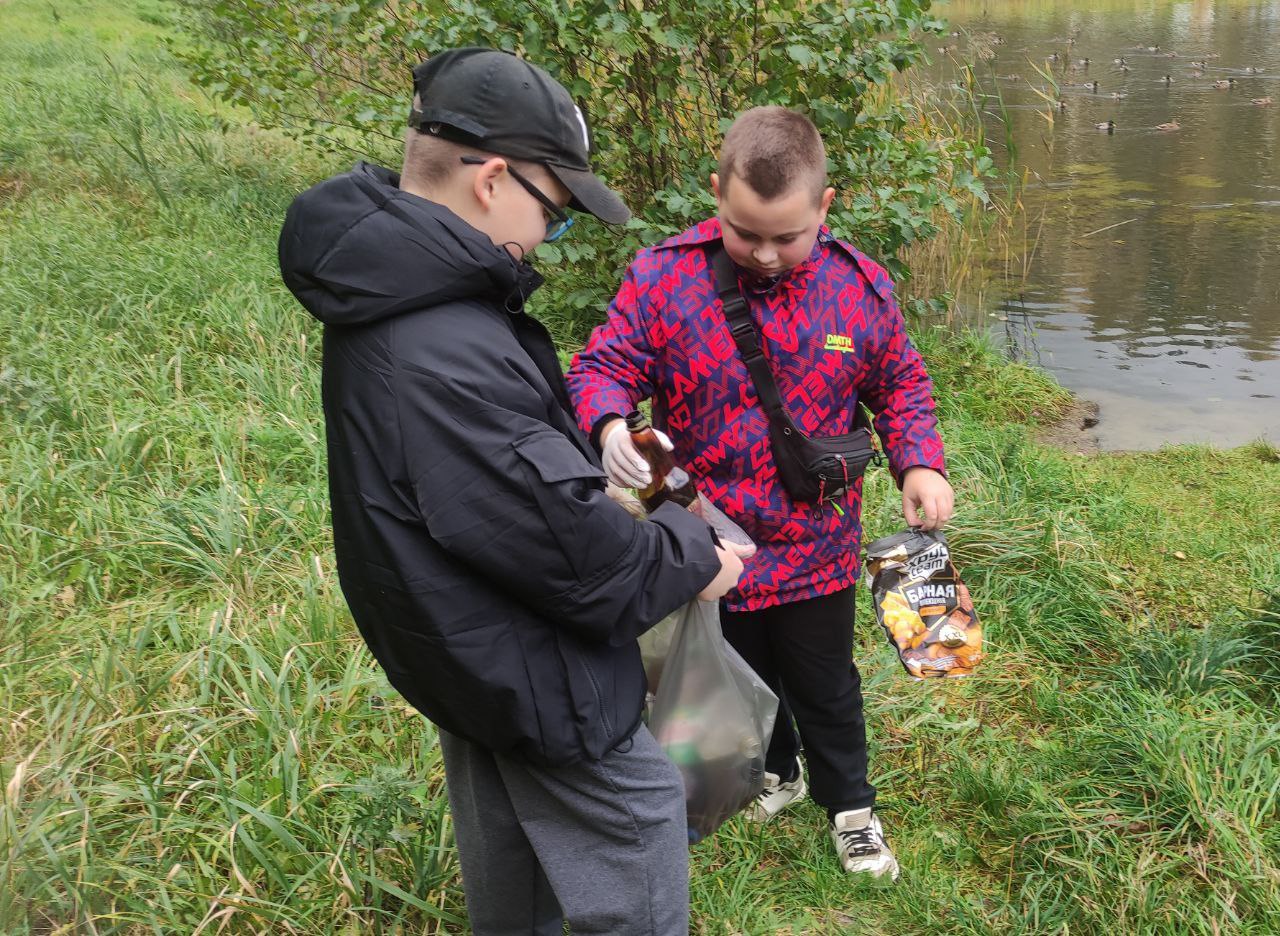 11.10.2025г. участники кружка "Школа лидера" ГУО "Средняя школа N°73 г.Гомеля" провели в родном 104-м микрорайоне акцию "Чистое озеро" по сбору мусора, оставленного на берегу нерадивыми отдыхающими.