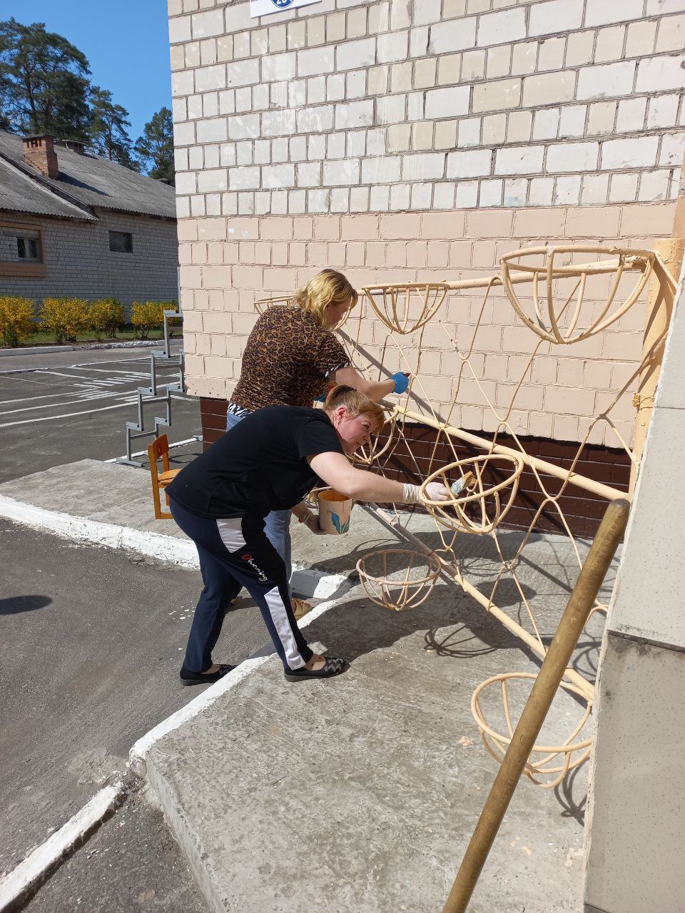 24 апреля, в рамках акции "Чистый четверг", в ГУО "Средняя школа 73 г.Гомеля" проводятся работы по благоустройству пришкольной территории : подсыпка газонов, посев газонной травы, побелка опор ограждения и бордюров, покраска уличных стоек для цветов, посадка цветов, оформление вертикального озеленения