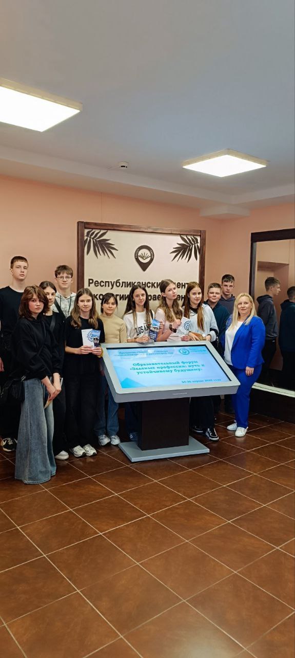 На днях учащиеся ГУО «СШ №73 г. Гомеля» присоединились к республиканскому форуму «Зелёные профессии: путь к устойчивому будущему», организованному Республиканским центром экологии и краеведения совместно с Детским Фондом ООН (ЮНИСЕФ) в Беларуси.