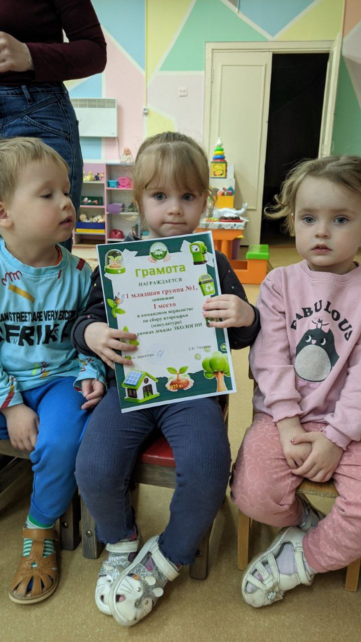 Каждый маленький вклад – большой шаг к сохранению природы! Особые поздравления малышам из 1-й младшей группы 1, средней группы 1 и старшей группы 2 – они получили сладкие призы и дипломы за свою активность! Гордимся нашими юными защитниками планеты!